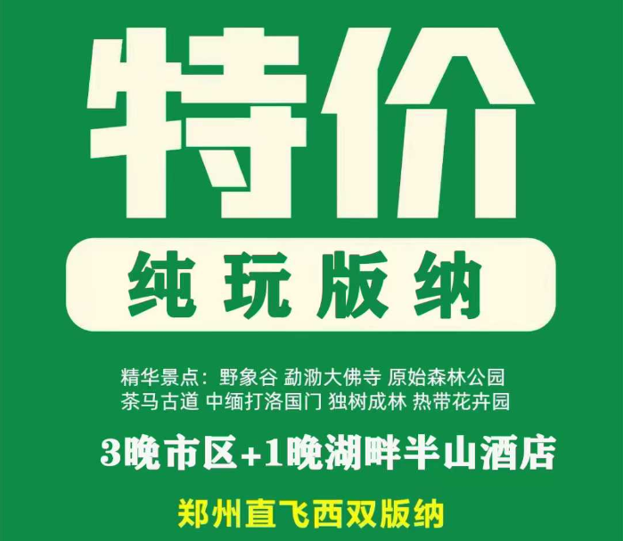 【纯玩版纳】郑州直飞5日+原始森林公园、野象谷、热