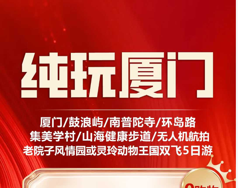 【纯玩厦门】厦门/鼓浪屿/南普陀寺+双飞5日