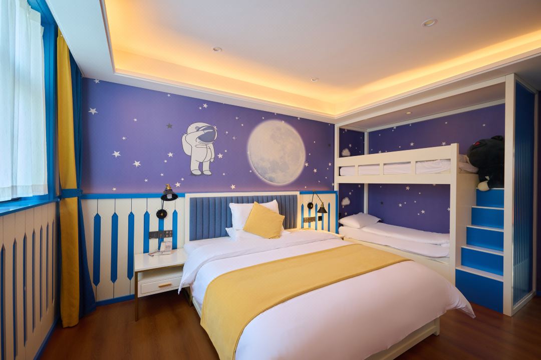 龙嬉亲子酒店坐落于双龙巷文化街区内,酒店占地面积3549㎡,是集住宿、餐饮、娱乐为一体的亲子主题酒店。酒店有不同主题风格客房40间,设有大床、标间、亲子房,可接待90人左右的亲子研学团队入住。且涵盖萌宠采摘园、沙坑区、攀岩墙、室内大型滑梯等娱乐设施,最大化的满足了孩子及家长安全、舒适、趣味和互动的入住体验。
