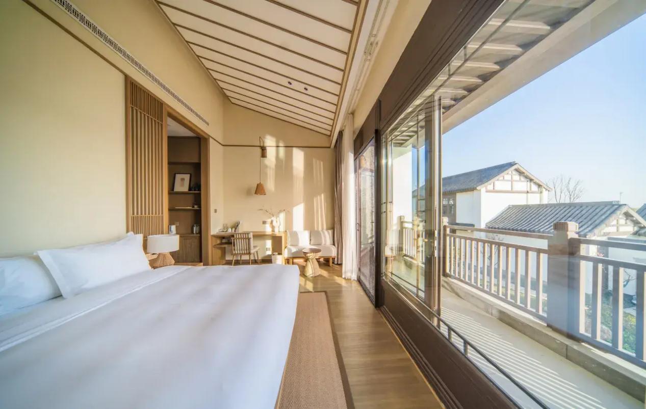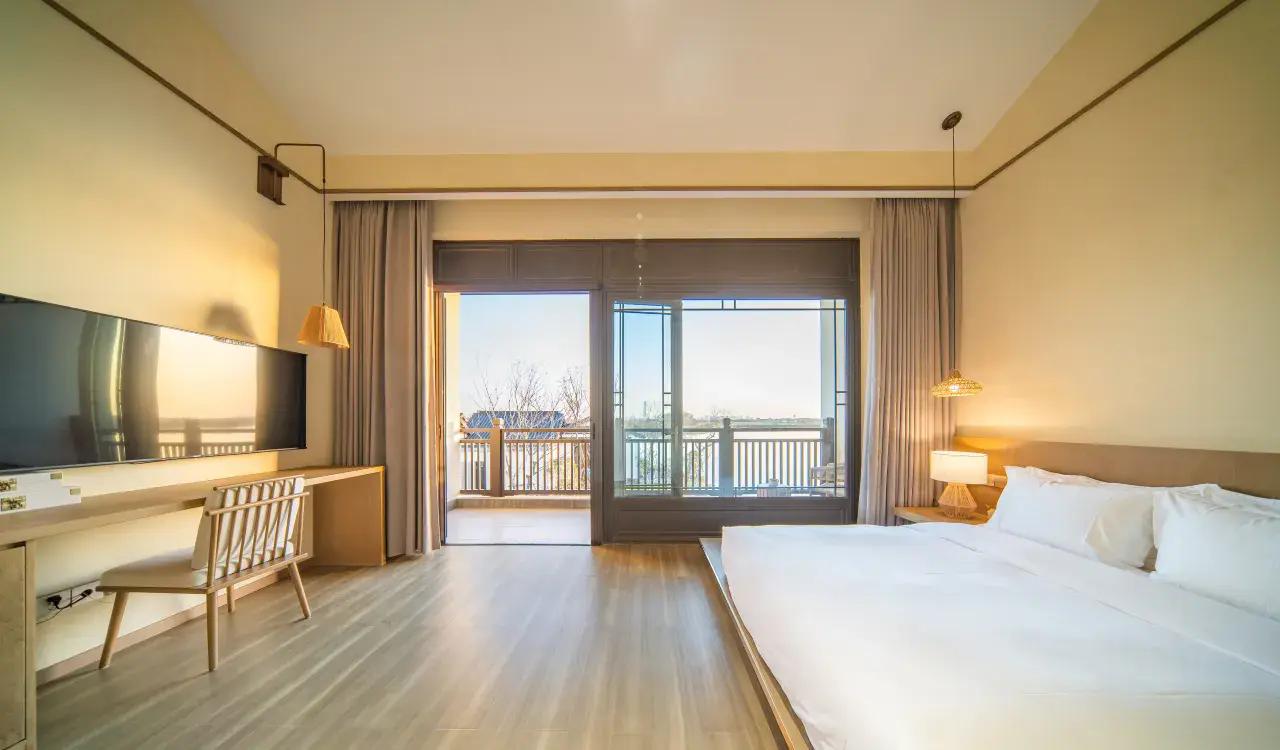 度假区内有精致客房,建筑及装饰设计,融合江南水乡特色风情,结合乡村质朴元素,为客人提供身临其境的水乡乡村度假体验,住宿空间内用品及配套物资均采用国际高水准品牌,力求提供品质化的硬件体验。