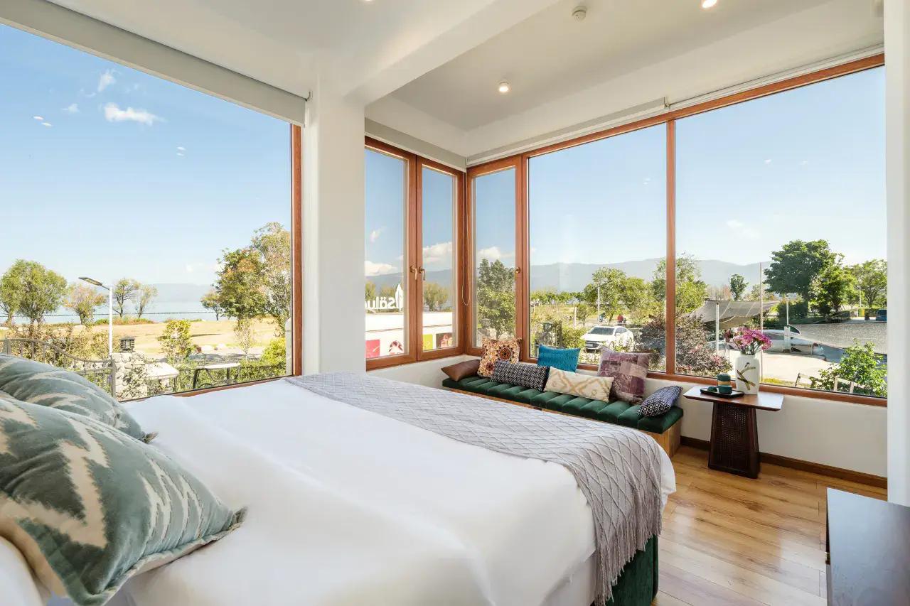 自然风光:民宿毗邻洱海,每个房间都能欣赏到洱海山水画般的美景,让人与自然和谐共处,享受静谧时光。
