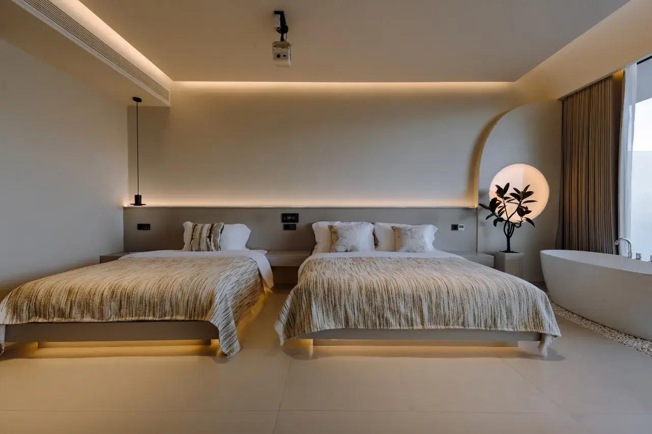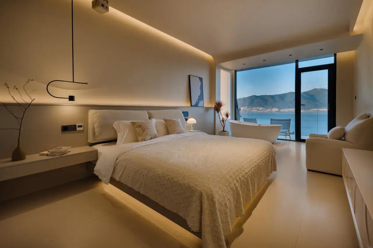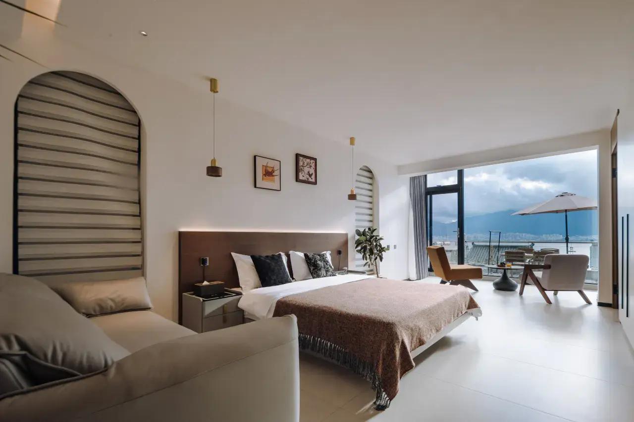 【独特设计理念】——秉持着对美学与功能性的深度理解,以纯净无暇的白色为主调,犹如云朵般轻盈,又如白鸽羽翼般圣洁,给人带来一种清新脱俗、宁静致远的感觉。这种大面积的白色运用不仅巧妙地放大了空间感,更营造出一种明亮通透、宽敞舒适的居住氛围。然而,看似单一的白色世界并非乏味无趣,而是蕴藏着丰富的层次与变化。设计师独具匠心地引入了深邃沉稳的黑色作为点缀,如同夜空中闪烁的星辰,或是墨色画卷上的灵动笔触,瞬间赋予了整个空间以深度与质感。黑与白的碰撞,既对立又和谐,简约而不简单,恰到好处地展现出一种现代美学理念。客房类型丰富多样,无论是浪漫温馨的大床房,还是充满童趣的哆啦A梦亲子房,抑或是拥有270°欧式拱门观景视角的苍山洱海景套房,均巧妙地将室内空间与户外景色无缝衔接。面积从56㎡至套房的188㎡不等,确保每位住客都能享受到宽敞舒适的居住环境。