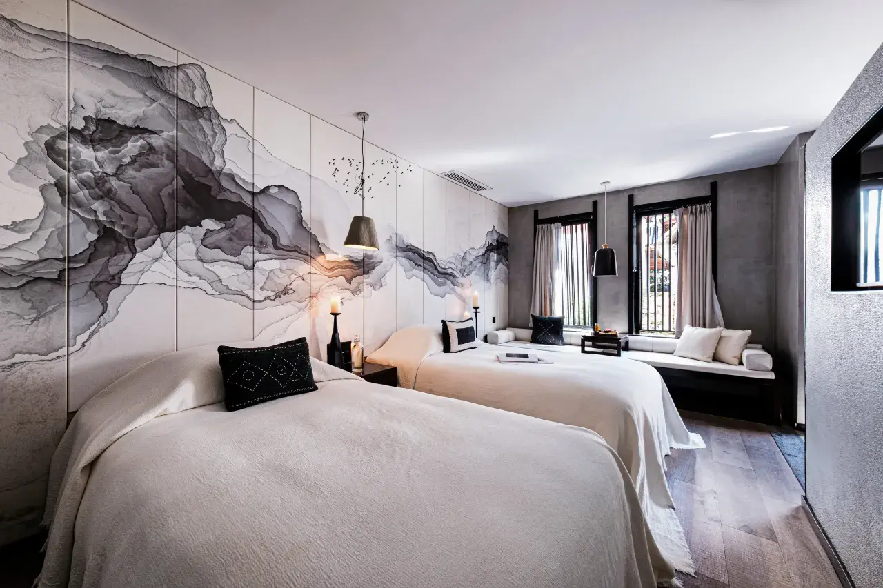 丽镘酒店特邀国际知名设计师进行规划设计,被业界称之为当代空间魔术师,艾特国际大奖获得者。酒店将原建筑拆除后重新规划布局设计,将建筑形态与景观设计有机的融入到丽江古城风貌中。丽镘酒店拥有前、后两院,动线设计非常巧妙,高低错落,简约大气。酒店设计导入国际前沿理念,犹如中国水墨画意境,巅覆传统民宿设计的大胆创新。