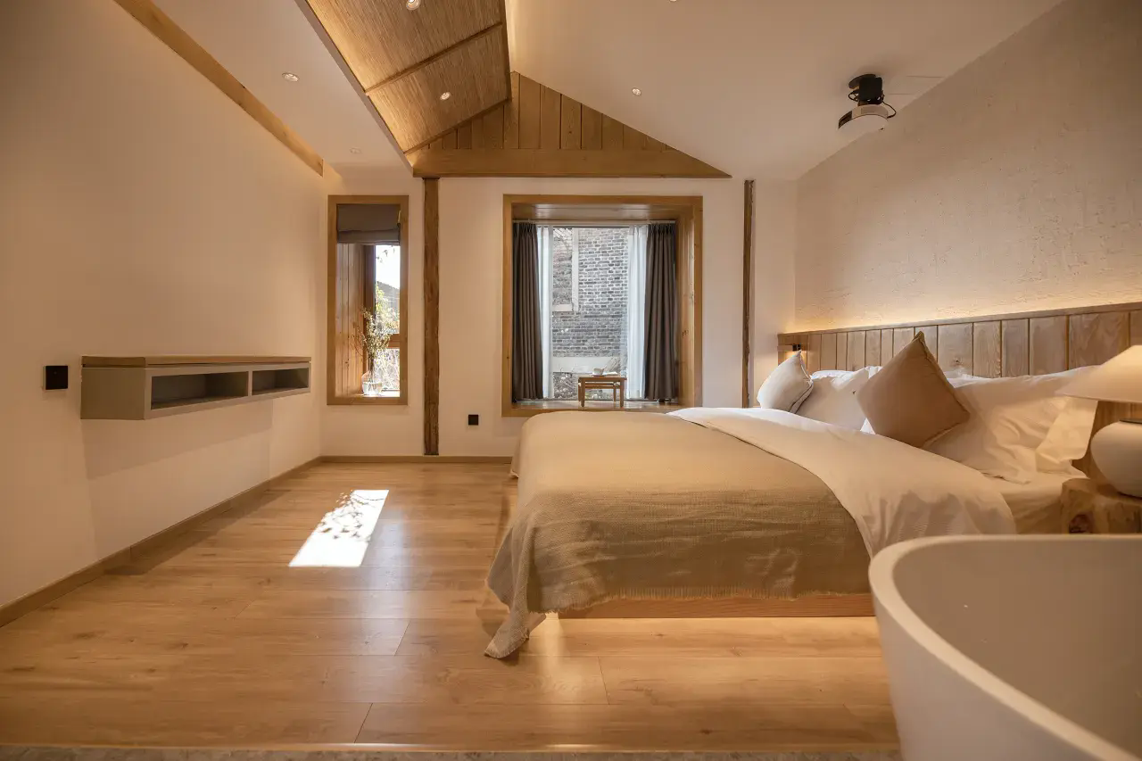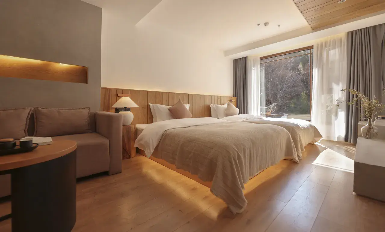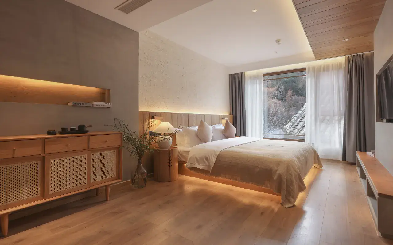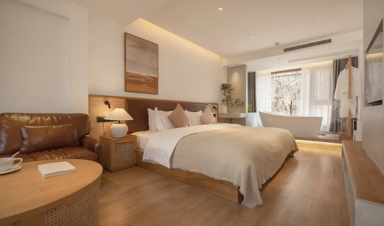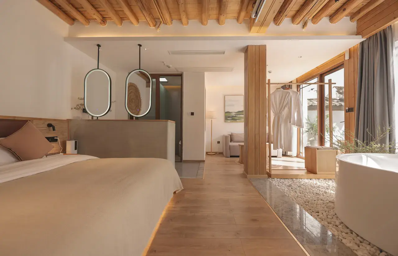 整套客栈风格以丽江自然风元素为背景,设立15间客房,包含大床房,双人间,家庭双床房,家庭套房四种房型。房间简洁干净采光好,不吵闹,全天时热水供应,每间房独立空调,客栈设有洗衣房,晾晒区,停车位。全智能清新脱俗的入住体验。