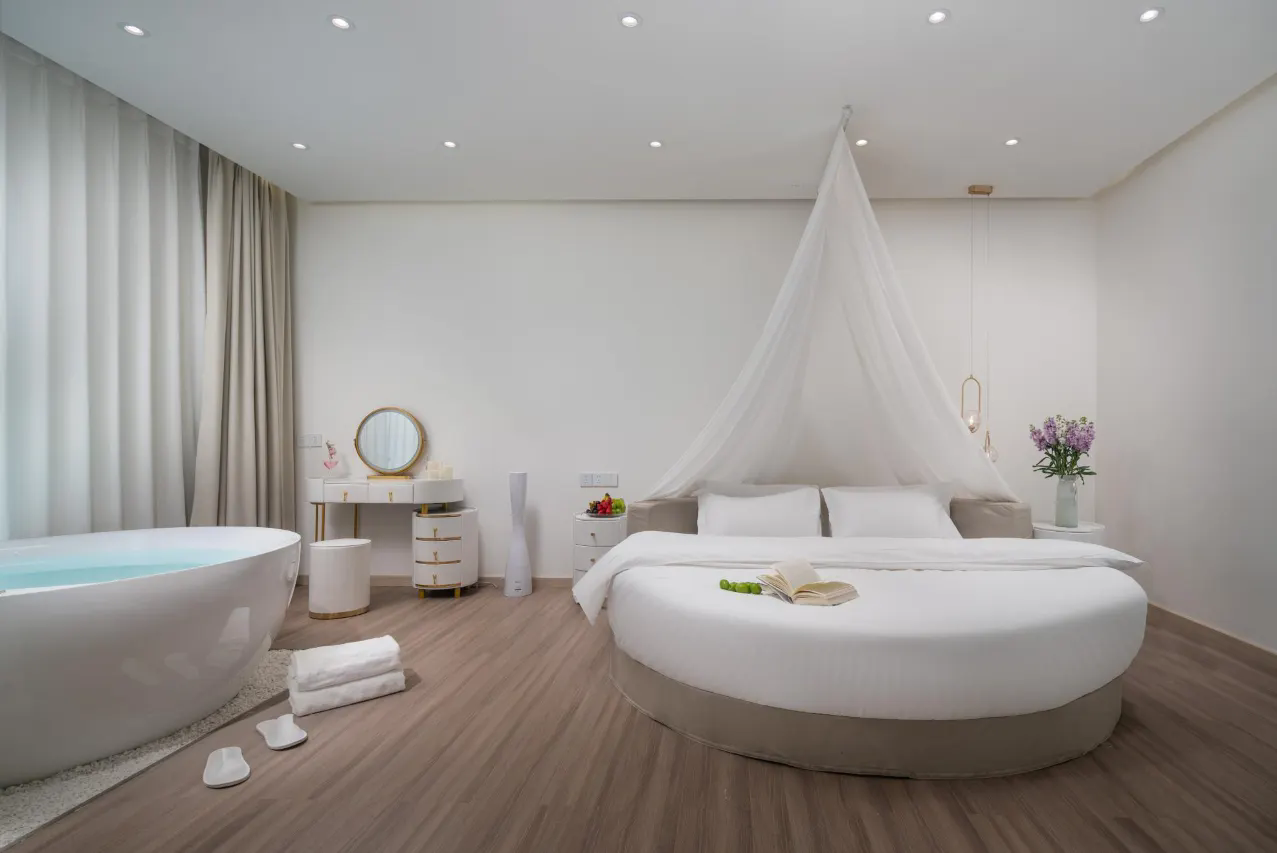 2、下单后以客服反馈实际房量为准,因现场满房或无房请您正常退订或延期入住即可,如遇周末及节假日预订涉及到房间补差以客服告知为准。