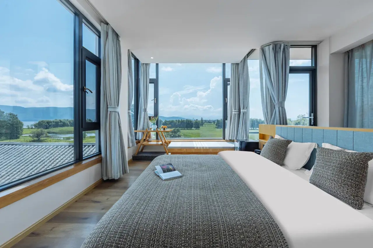 部分房间还设有私人阳台或露台,从民宿的房间或露台向外望去,洱海的湖光山色尽收眼底,远处的苍山巍峨耸立,构成了一幅如诗如画的山水画卷。