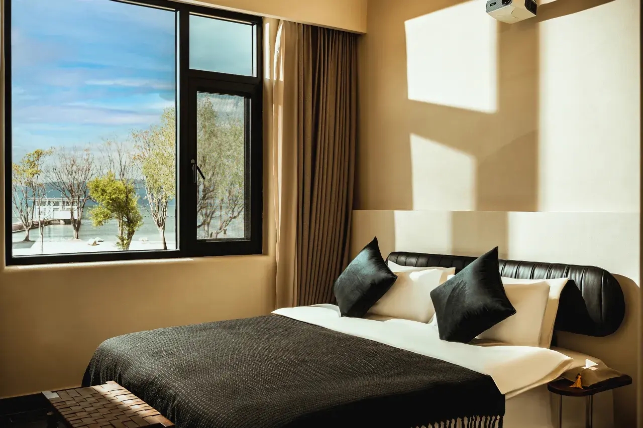 民宿坐落于风景秀丽的洱海海西生态廊道,著名的洱海之门旁边,拥有各类客房,可满足各类出行需求,民宿客房更是配备了蓝盒子床垫、 无印良品的床品、泰国乳胶枕、小米投影仪、德国NOEO的智能马桶及卫浴、戴森风筒、美的空气净化器、Roomplus洗护,部分房间提供爱马仕洗护用品、马歇尔音响、迷你吧小冰箱软饮。酒店大堂配备了真火壁炉,围炉就坐,烹茶煮酒,夜话苍洱,自在自得。