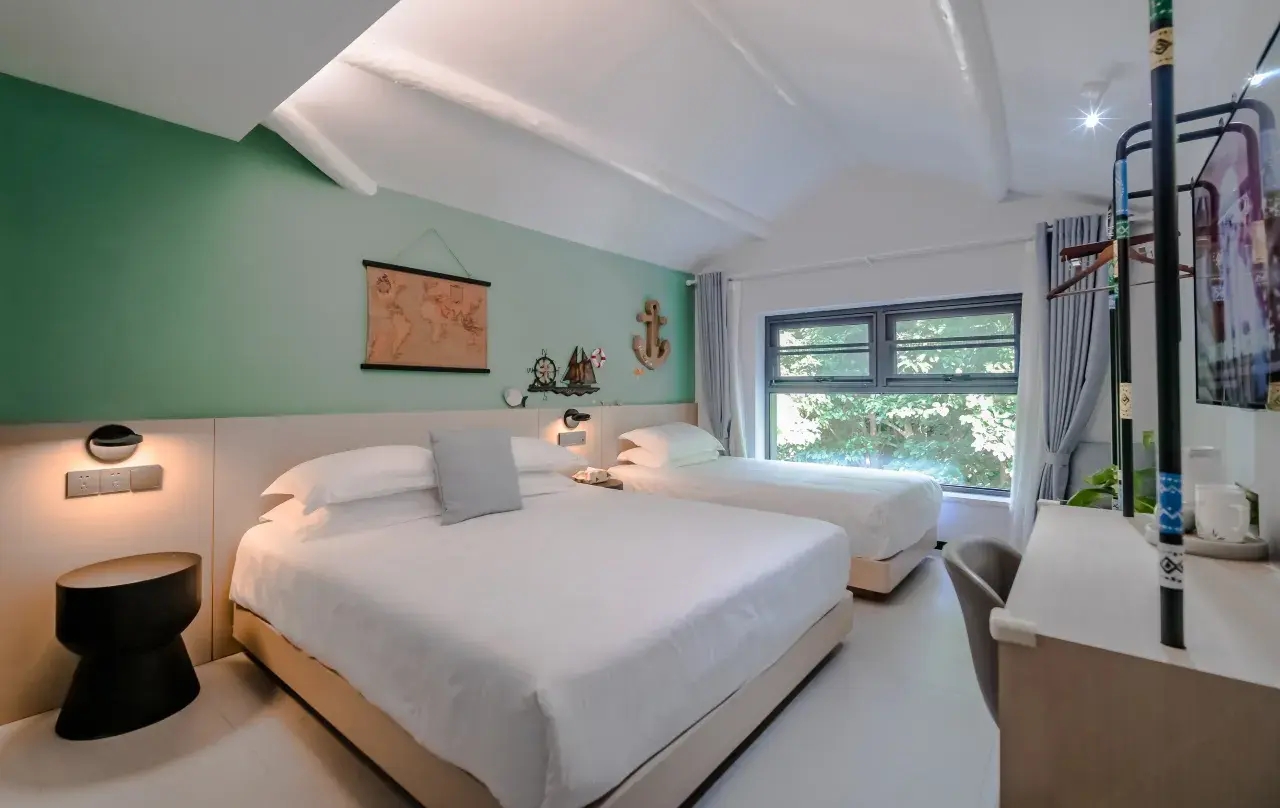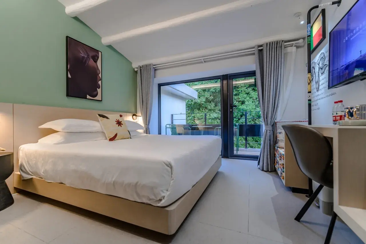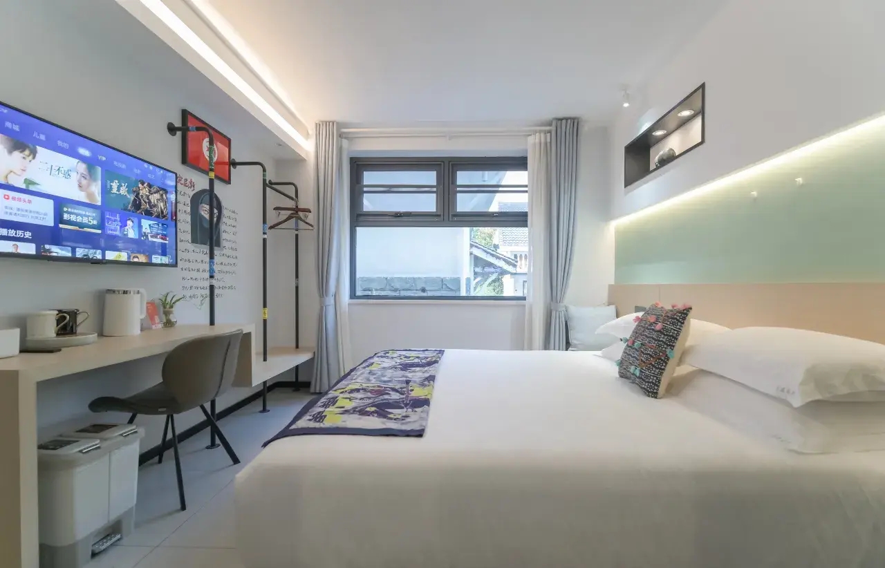 从世外桃源到繁华都市,仅仅一个转身的距离。一墙之隔是浙江大学,餐饮一条街应有尽有,市井烟火气和学术氛围融合得恰到好处。西湖、灵隐也近在咫尺。蓝莲花开·在西湖民宿,开在杭州植物园的门口,进入青芝坞,走到最里面,便能寻得这处安宁幽静之所。民宿客房,分别用非洲国家命名。每个国家(房间)都有故事,在壁画,挂画和摆件里体现每个国家的特点,舒适的同时增加些趣味。闲暇之余,可以在一楼公区静坐放松,看看书,喝杯咖啡,和朋友一起聊聊天,或者一个人发呆也挺好呢。