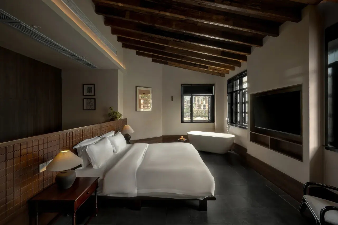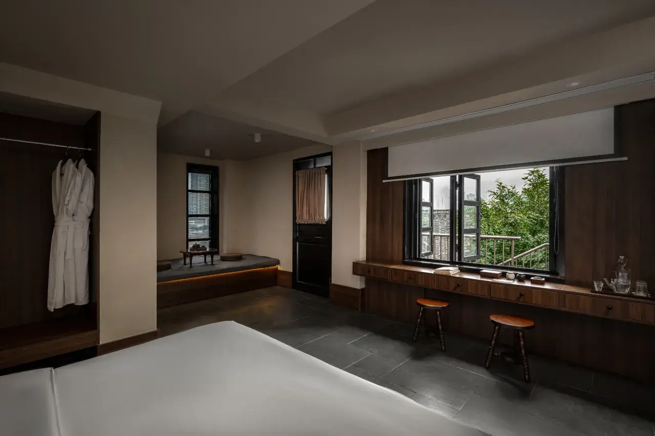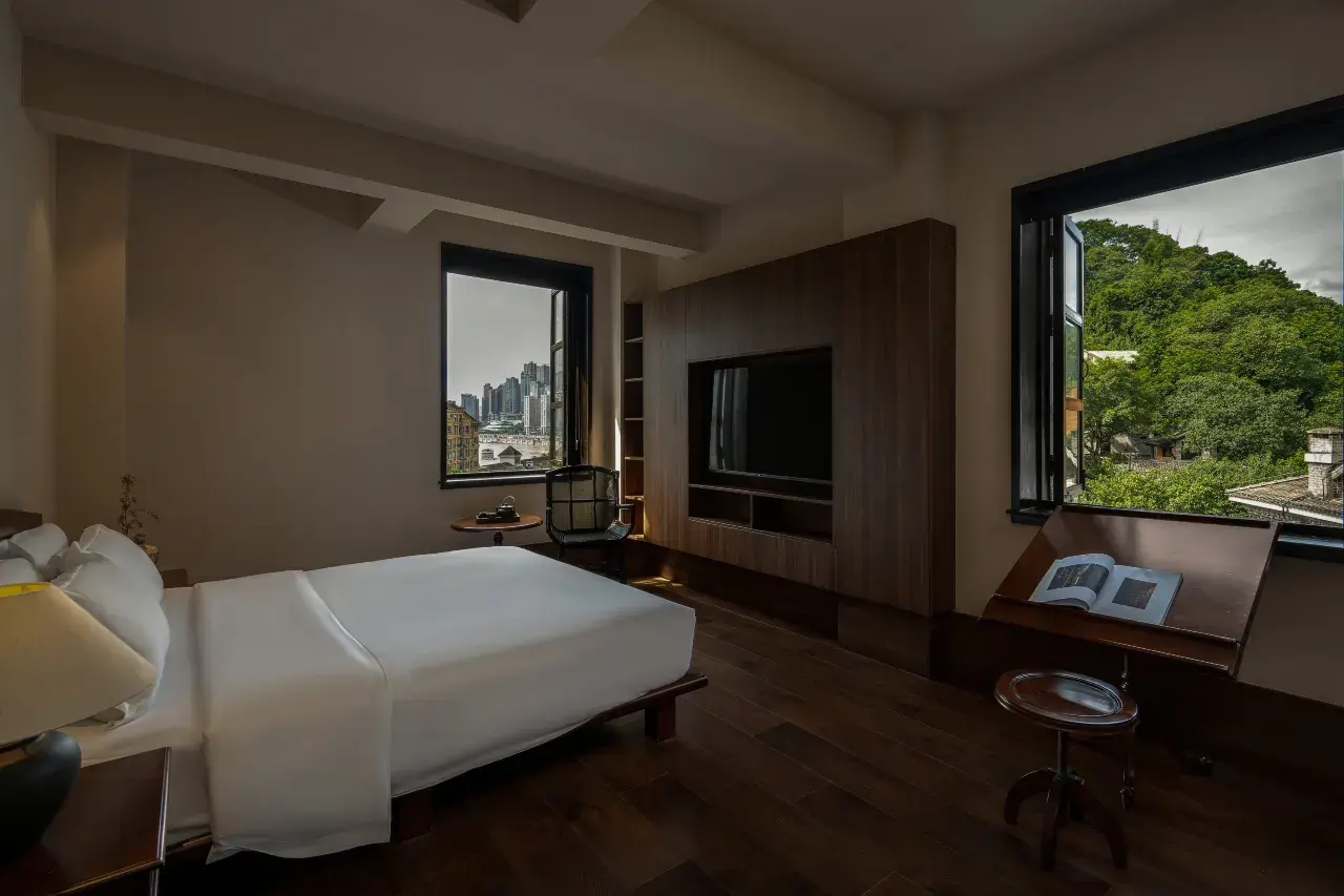 「旅行,是生命的再分配」 一趟难得的人生, 应该分出十天在逢棠, 无论你最初抵达时带着怎样的心绪, 在这里都能获得意外的惊喜。 每个城市必定有这么一个地方,你透过玻璃窗能够一眼俯视这座城市当下的浩浩繁华与岁月的蛛丝马迹。下楼既是人间烟火、乡风俚语,更有摩登都市,山河繁华。 在龙门浩-下浩里的半山处,见证着百年下浩风尚的首善亭,守望着山城百年来历史风貌的吊脚楼建筑群,对面是来福士的气势磅礴、渝中半岛的鳞次栉比、长江的灯影婆娑、索道的循环往复,山城的魔幻与雄壮尽收于眼,重庆城市的精华浓缩于此,举目这座城的所有。
