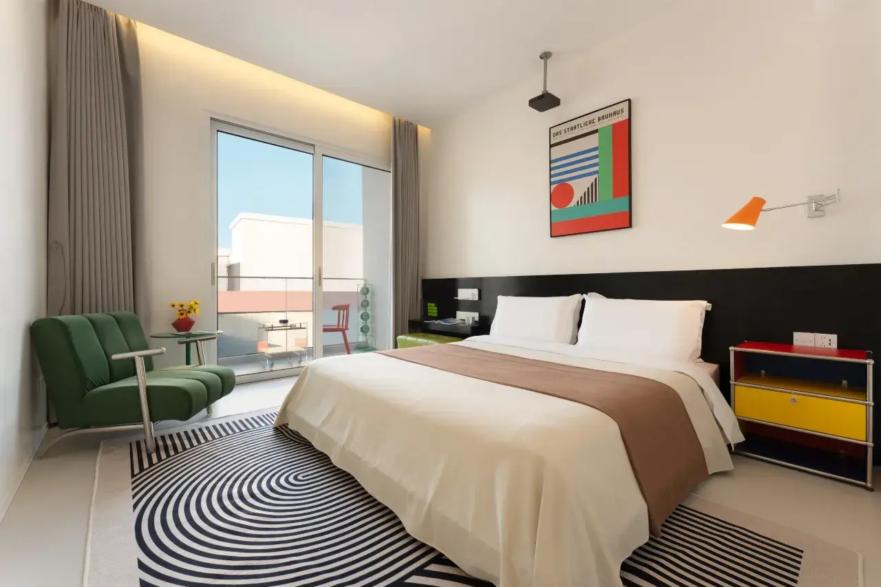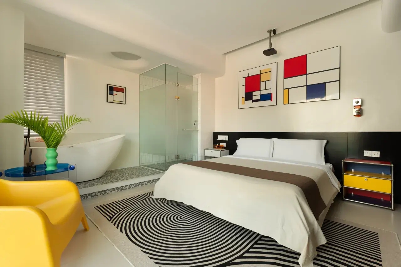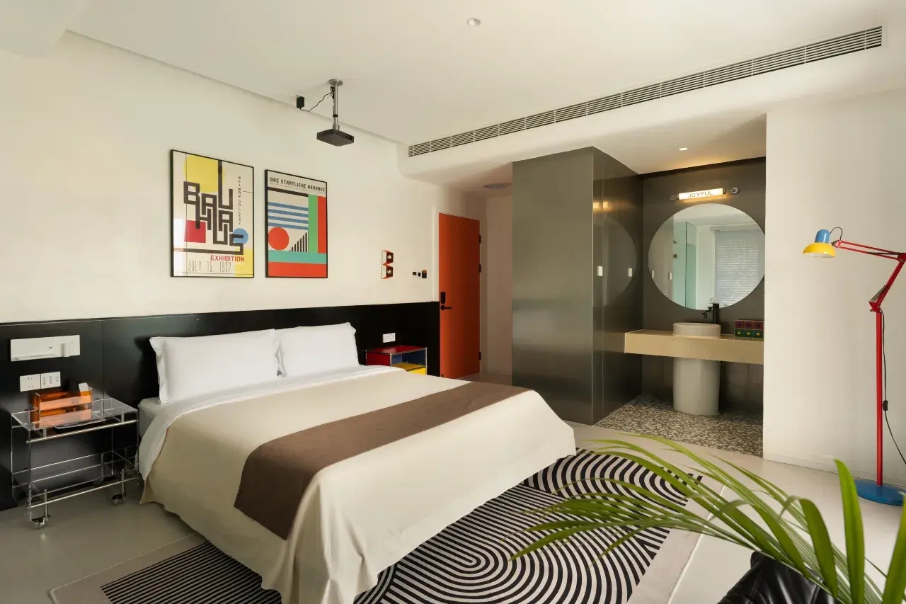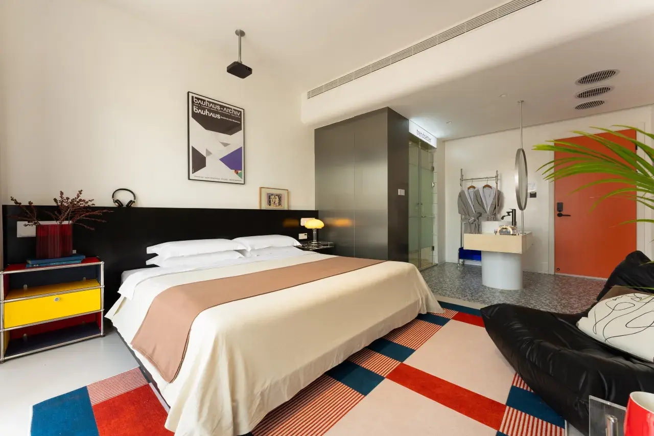 Y2K风格源自2000年交替时期的文化影响,呈现出未来感十足的设计元素,充满金属感、霓虹色调和科技感图案。它融合了数字化图形、极简主义的曲线与亮眼的色彩,代表着对新世纪科技浪潮的期待和探索。结合包豪斯的简洁功能性,我们的设计旨在打破传统界限,创造出既实用又富有视觉冲击力的空间。通过几何式图形与前卫的色彩搭配,打造出一个兼具理性与感性的环境。