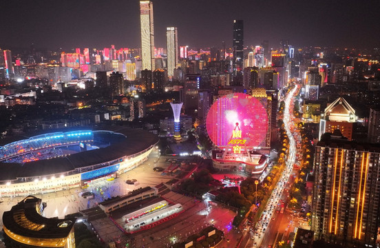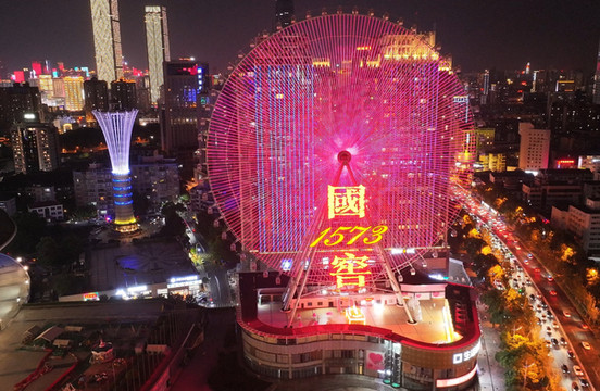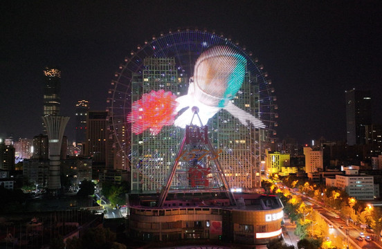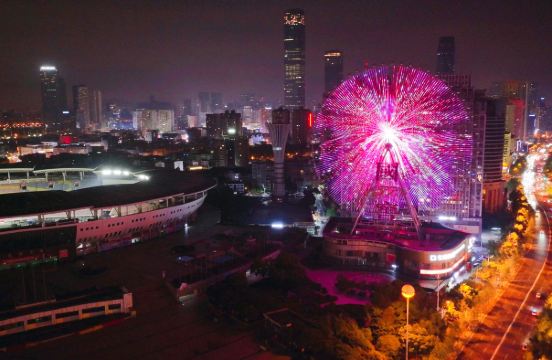 长沙摩天轮的称奇之处在于它立在巨型屋顶上,十分新奇。晚上,此处更是灯火通明,绚丽多彩。