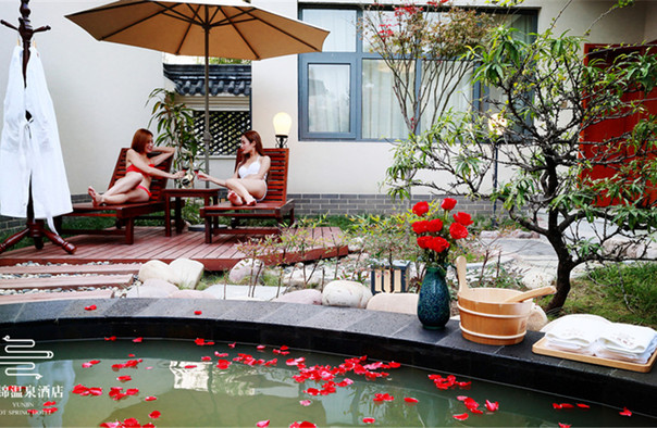 云锦温泉运用环抱及围合式的空间组合,别致秀美的园林景观,小桥流水、廊腰缦回、见缝插绿、名卉云集。这些令人惊慕的一切,无不诉说着建筑大师们精心的设计、巧妙的布置与雕琢,无不展示着云锦温泉的精致艺术气息。体现出生态、自然、休闲、养生、风情典雅,且不乏私密空间的温泉沐浴新理念。