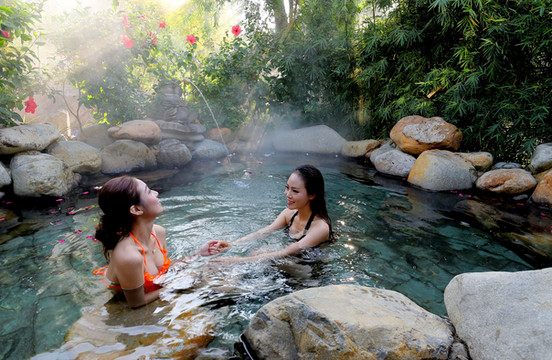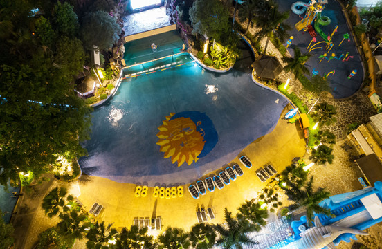 温泉区每天晚上8:30-21:00都有固定的表濱:享受巴厘岛风情温泉区,温泉池共建设爪哇海啸动感温泉冲浪、温泉漂流区以及众多的药物浸泡、花浴等各式温泉池45个,让游客感觉就像在沙滩上冲浪般刺激,还可以让游客和设施进行互动——温泉喷水、发出声音等。温泉池旁边的假山上有个舞台,游客在冲浪、漂流、泡温泉之余还可欣赏到别具东南亚风情的歌舞表演。