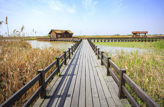 穿过一段沙石路是一片荷塘,还有一条木质九曲桥与芦苇荡,《搜索》中高圆圆在栈桥上回眸一笑的经典镜头便是在这儿拍摄的。秋天的芦苇荡很好看,木桥的入口处立着一幅《搜索》剧照,女孩子不妨也用同样的造型来上一张照片做纪念。该剧中的爱情小屋,以及一些拍摄临时搭建的场景也在这附近,感兴趣可“搜索”一番。