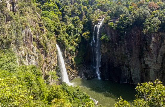 九鲤湖与武夷山、玉华洞并称为“福建三绝”,以九鲤飞瀑、冰川峡谷、千年祈梦三大奇观著称,一直以来都有有“九鲤飞瀑天下奇”的美誉。旅行家、地理学家徐霞客游览后赞叹:“即匡庐三迭,雁荡龙湫,各以一长擅胜,未若此山微体皆也!”瀑布大小不一,大至一百多米,小到三、四米。瀑布漈高达百米,气势磅礴,珠帘漈从刀削斧劈般的千仞巨石上齐刷刷地滑下,形成万斛水珠,宛若垂帘;珠帘漈的东边,水从盘龙山顶贴着石壁慢慢滑下,形成两股晶莹的细流,看起来就像是玉琢的双柱,这就是玉柱漈。沿路在瀑布中穿梭,一会儿欣赏瀑布的气势磅礴,一会儿欣赏涓涓细流,感受扑面而来的凉意和小小水汽。