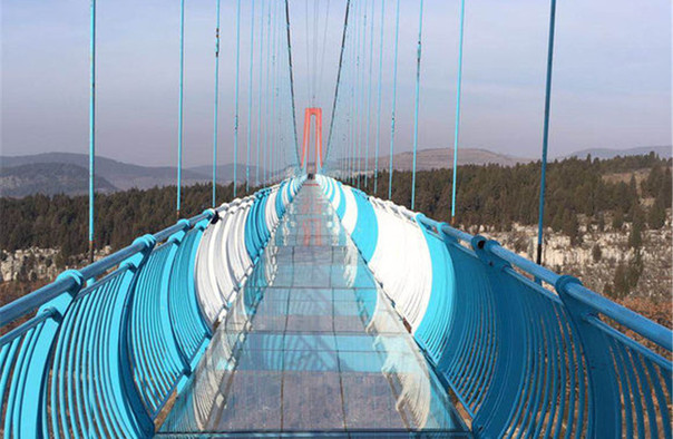 景区内有玻璃吊桥项目,该吊桥长200余米,横跨梅花山大峡谷,桥面由玻璃和LED显示屏组成,游客走在透明的玻璃桥上抬头可观景,现代建筑艺术与自然山水景观相存相依。