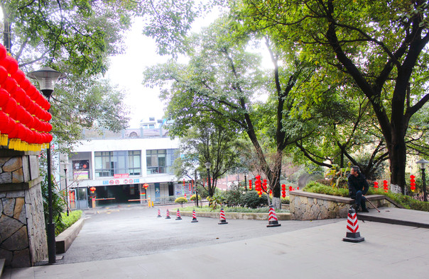 李子坝公园又名李子坝抗战遗址公园,位于李子坝轻轨车站旁,背靠鹅岭,北面嘉陵江,全长1.8公里,面积共12万平方米,是重庆较早抗战遗址公园。园内包含5组抗战历史文物建筑,分别是高公馆、李根固旧居、刘湘公馆、国民参议院旧址、交通银行学校旧址,集中展示了重庆抗战时期的政治、经济、文化、军事、外交、金融等各个方面的历史风貌,是抗战文化的新符号和新阐释。李子坝抗战遗址公园亲水滨江,绿地率约60%,植物栽种约7万平米,栽种有大型的银杏、香樟、黄桷树等大型乔木灌木。公园背靠巍峨的浮图关,面临碧波的嘉陵江,走在公园内,每一处细节,都彰显着其匠心独运。雕刻细腻的木质护栏、规整有序的砖石地面、风格统一的指示牌来到公园,总能看到市民结伙结伴打着太极拳,或三三两两在公园内散步,或沿着台阶下到嘉陵江边,欣赏突出的滨水园林特色景观。