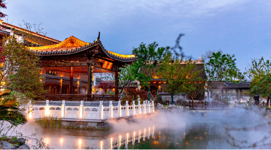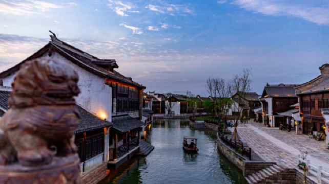 在水城中,1座文化丰碑,2场民俗活动,2处灯影传奇,3个沉浸体验场所,4座新中式园林酒店,5 个文化体验场馆,100 余家国风国潮商业、工坊、非遗手作、茶肆酒楼全面生动的展示了里下河千年历史,传递了其中自在生活的精神本源。