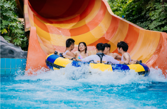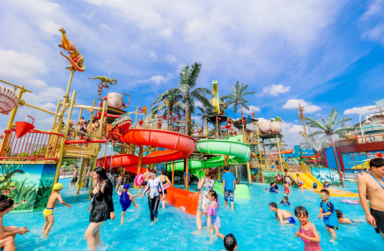 侏罗纪水世界紧邻中华恐龙园,真实还原侏罗纪时代的水域,2000㎡华东大人工造浪池,420米环形亲子水中徒步赛道,及十多项级水上极限项目,带你体验夏日惊险刺激的水上娱乐。飓风湾——巨型造浪池全新扩建的飓风湾2.0面积达到了4000㎡,水域面积为原来的两倍。在这个巨型造浪池里你可以肆无忌惮地戏水,感受水花清凉地拍打,洗涤夏日的炎热。全新的空气造浪系统也将让平静的飓风湾风云突变波涛汹涌,一波又一波的浪花带来一次次冲击,你可以随着浪花跳跃,感受波峰与波谷之间瞬时的变换,体验一次真正的风暴。到了晚上,飓风湾的水上舞台还将化身DJ秀场,上演一场融合电音、水花、比基尼的狂欢派对。悠闲谷——278米水上侏罗纪漂流乘坐皮筏飘荡在悠闲谷,你的侏罗纪之旅就正式开始了。当你惬意地享受着两岸的丛林风光时,千万不要被探出脑袋的恐龙们吓到,因为等待着你的将是更刺激的冒险。在278米的漂流过程中你将会不断地面临恐龙们发起的水花喷射,你可以享受他们送来的清凉劲爽,也可以和他们展开一场趣味十足的水战。儿童池——全新亲子戏水专区这是专为儿童打造的浅水区,父母可以让小朋友在水中尽情地玩耍。同时池中还增加了水滑梯、矮房子、雨蘑菇、彩虹隧道等多个体验设备,不仅增加了小朋友们玩水的乐趣,父母也可以和孩子们一起享受欢乐的戏水时光。巨型水寨——多层次水上互动平台大型的戏水池加上钢结构游乐设备共同构成了一座梦幻的水上城堡。当战争的号角吹响时,一挺挺别致的水枪向各个方向永不停息地射击。当城堡顶端的水斗聚集了强的“力量”时,滂沱的大水醍醐灌顶般呼啸而下,冲向城堡下的每一个人。