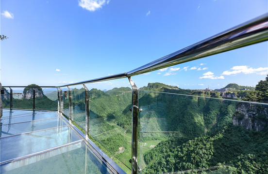 高空玻璃漂流,全长1200米,由全透钢化玻璃组成游客穿戴好防护防水设备后,坐在气垫船上顺滑道而下,沿途会经过多个大转盘、S型弯道,像在悬浮于空中的溪流中任意穿梭,宛如巨龙盘旋在山中。