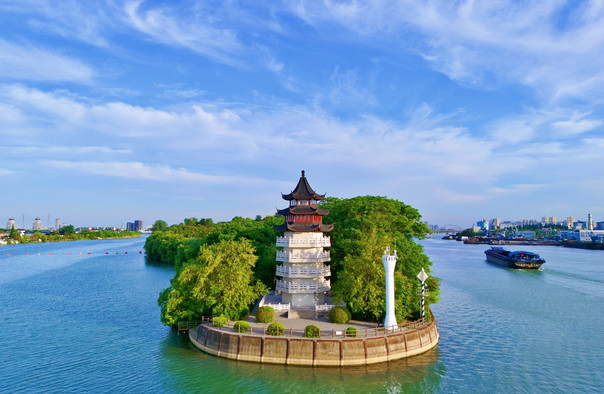 你还可以在景区里,沿着运河边的步道散散步,走到景区的最北边能看到镇水宝塔,再看看河上船来船往的景象,吹吹风,十分惬意。