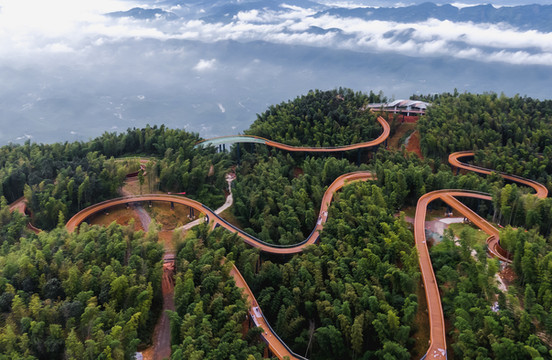 游玩景区一般都是从万岭镇的景区西大门开始游览,进入大门先看到的是长宁竹海博物馆,里面有一些做工精美的竹制品,值得驻足一看。然后登上索道,在索道上俯瞰竹海全景,视线更宽广。索道终点可抵达竹海景区核心的观海楼和翡翠长廊等景点。