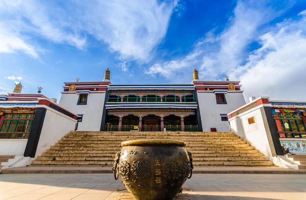 五当召潜藏在包头市连绵起伏的大青山深处,一幢层层依山垒砌的白色建筑,群山环绕,为苍松翠柏掩映,雄浑壮观。五当召创建于清康熙年间,是内蒙古较大的藏传佛教格鲁派寺院。与西藏的布达拉宫、青海的塔尔寺和甘肃的拉卜楞寺并称为中国喇嘛教的四大名寺。五当召是典型的藏传佛教寺院的风格,没有统一的中轴线,所有的大殿都不规则地散布在山谷中,没有围墙和院落,各建筑自成一体。各大殿的顶部还有风磨铜羚羊对卧法轮和寺徽,金光璀璨,周边群山松柏、经幡飘舞,显得格外壮观。五当召的主体建筑,以八大经堂(现存六座)、三座活佛邸和一幢安放本召历世活佛舍利塔的灵堂组成,游客在景区内可以步行游览各个主体建筑。苏古沁独贡(殿),是五当召内较大的建筑物,位于寺院前部,高三层。一楼前大厅是经堂,这里有八十根方柱,上面雕刻和彩绘着各式花纹图案。经堂的四壁绘满了释迦牟尼佛传故事和各种护法神像。二楼回廊处绘有“九大佛寺建筑”鸟瞰壁画很是珍贵,你一定不能错过。每天早晨,各殿喇嘛都来此殿诵读早经——满迦经。五当召修建较早的殿宇是洞阔尔殿,高居于全寺之中,其他建筑均以这里为中心,乾隆皇帝于1756年赐名“广觉寺”,用满、汉、蒙、藏四种文字雕刻的牌匾悬挂在殿门正中门楣上。这里是学习佛教时轮学部,讲授天文、历法、数学、预测未来、推算藏历日期。殿前广场是讲经、辩经的场所,即学术升级的考场。在金科(曼陀罗)殿的二楼是文物博物馆,展出了五当召所保存的部分珍贵文物。你可以观赏到唐卡、清代景德镇瓷器、活佛的生活用品、法器、内蒙古仅有的两座鎏金曼陀罗坛城。其余各殿也各有特点,有的殿内立有高达十米的释迦牟尼铜像;有的大殿内供奉着高达九米的黄教始祖宗喀巴大师的铜像,有的殿内供有塑面目狰狞的护法金刚像,或者供奉白度母和绿度母塑像等。这里的庙会是每年农历七月二十五至八月初一举行,全寺的喇嘛在苏古沁殿念“嘛呢经”;傍晚喇嘛们手持经轮,吹着法号,敲着羊皮鼓绕寺庙而行。庙会活动五花八门,跳鬼是其主要活动之一,感兴趣的千万不要错过。部分殿宇因为临时或者其他情况会关闭不对外开放,具体以当日景区公告为主。五当召地处偏僻,周边的服务设施不是很完善,住宿和饮食条件一般,多数游客会选择当日返回包头市区住宿。