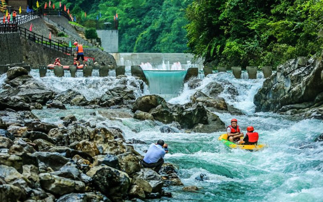 皮筏畅游在清凉的山泉水中,一边欣赏峡谷两岸的秀丽风光,一边感受岩石河道的惊险刺激,可以说这是炎炎夏日的绝佳解暑良方,漂流河道两岸花开成林,清新的风,吹来知鸟的声声脆鸣,每一口空气、都是天然氧吧的纯粹,从落差极大再到一片坦途,乘风破浪的刺激过后又有风平浪静的坦荡。