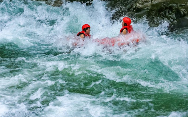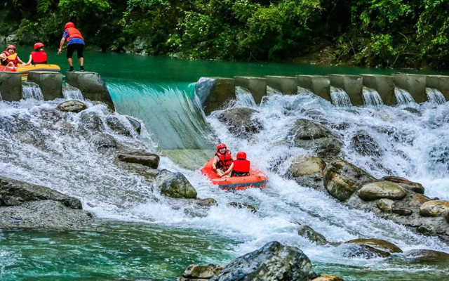 全程10公里的生态峡谷漂流道,现漂流道有2.5公里30余米的垂直落差,“水上过山车”的失重感,分分钟让你大叫刺激。