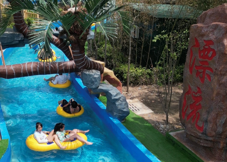 环型漂流河,蜿蜒辗转、清波粼粼,和你的家人、朋友、同事乘着浮圈顺流而下,飞速前进的同时清凉的水滴打在身上让您在炎炎夏日享受清凉和愉快;从高处携带水精灵一涌而下给我们助力急驰向前,犹如漂浮在浪尖,紧张、是勇气、胆略、毅力的挑战。会让家人、朋友产生乐趣与喜悦!这个夏天不容错过!
