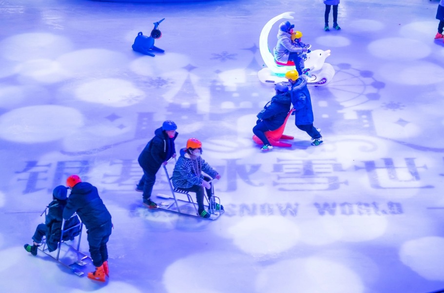 穿上冰刀鞋或骑上冰面自行车,让欢笑声、尖叫声响彻整个冰面。
