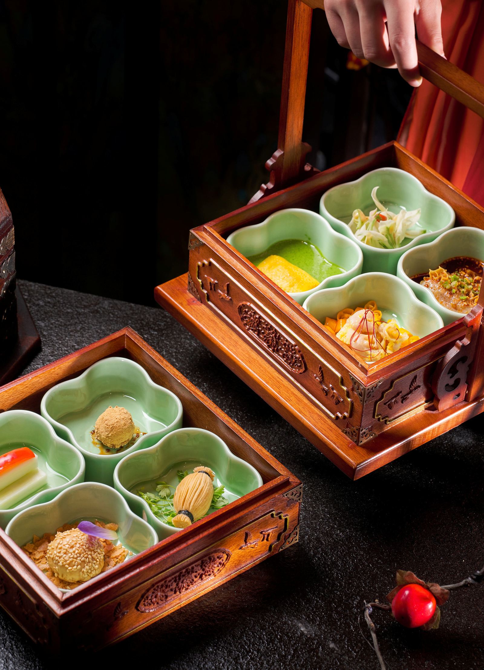 蜀宴赋以舞乐为楔,以美食为媒,以光影为境,结合中国不同朝代的宴饮文化特色,将汉服文化、川菜文化、礼乐文化贯穿其中,展开一张华夏礼仪的唯美画卷,带顾客款款穿越千年历史长河,体验独一无二的沉浸式古风宴饮氛围。