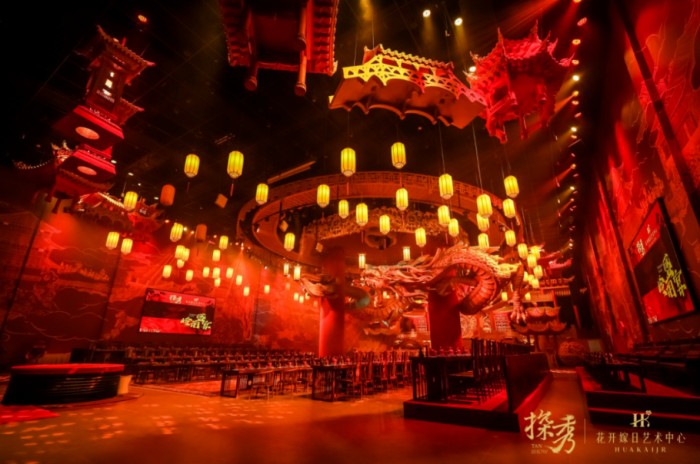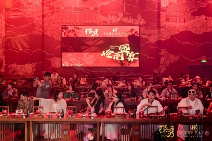 作为本场盛宴的重头戏部分,顾客们将在美轮美奂的宫廷布景餐厅体验一把皇帝宫廷宴会。在灯光、音效与舞美的完美配合之下,带来了长达两个小时的豪华视听盛宴。剧情围绕南越王赵眜与一位民间女子之间的爱情故事展开,在剧目的表演过程中穿插着送上与剧情有关的美味佳肴,更有与观众的随机互动体验,沉浸式演出的体验感拉满。一边享受表演一边进餐,仿佛古代的君王。