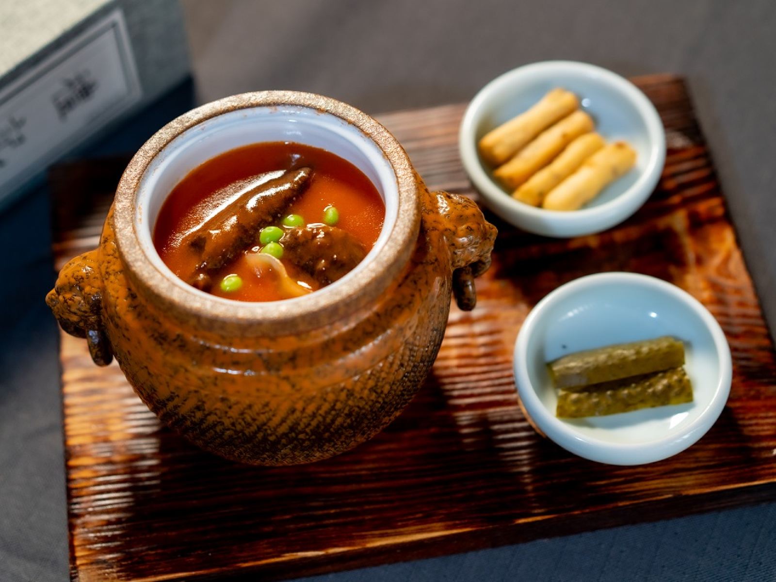 见东方·及第盛宴主要以“榜眼及第官府菜”为菜肴主体,秉持和芳苑百年前宅主—清朝翰林学士谭宗浚对美食的独家理念,将广东菜和北方菜优点有机融合,其中,大量使用海味干货,所以对泡发处理工艺特别精心,才能将食材的鲜美保留下来。