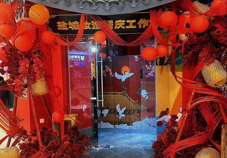盐城比翼轩宫宴是一家独具特色的沉浸式宫廷餐秀互动餐饮门店,店内提供多种古代精致服饰,顾客进门后可以根据自己的喜好挑选,还有专业的化妆师根据顾客的气质进行妆造,让顾客瞬间变身古代的王爷、公主、娘娘等,仿佛穿越回古代宫廷。