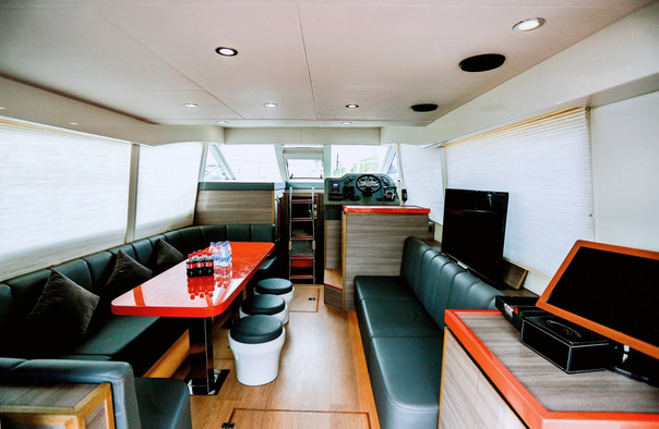 1、双体帆船西沙群岛船宿拼船自由行沙龙位(荷载8人,3个卧室,1个主卧大床+2个次卧大床+2个沙龙,皆配独立卫生间)