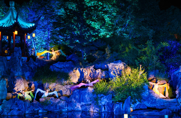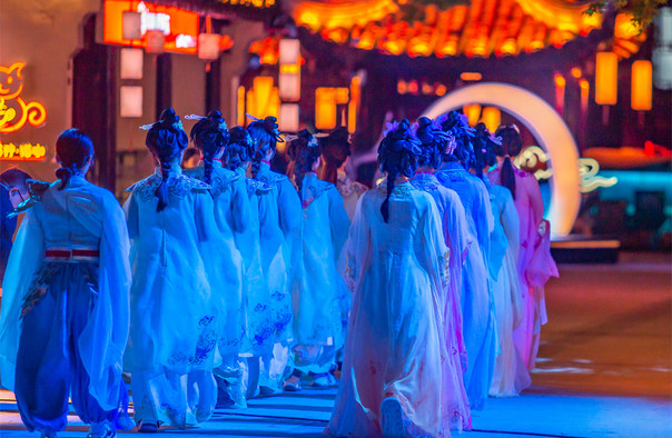 锦夜·青靛甪直,以江南温婉朦胧的美为底色,以杨惠之、陆龟蒙、叶圣陶、甫里八景的文化故事为IP体验场景、以姑苏特有的戏曲秀、风物秀、歌舞秀、霓裳秀、变妆秀等为体验内容,以“一夜走心江南”为记忆爆点构建片场式夜游行进秀,带来甪直文化、姑苏文化的沉浸式体验。