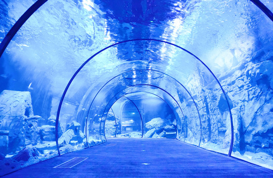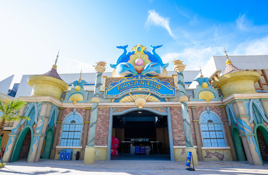 室内海洋公园,拥有近30000立方海水水体,超过100米隧道,拥有白鲸、花鲸、海豚、南极企鹅等珍稀海洋生物,以及来自东海、南海、 极地冰海庞大的海洋鱼类、珊瑚、水母等生物种群,白鲸剧场、海豚剧场、海狮剧场、美人鱼剧场系列表演魅力纷呈,深刻诠释人类与海洋动物至深情感。