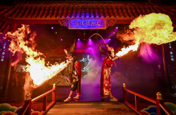· 演出内容: 《上善都江堰》大型沉浸式舞台剧还原2279年前李冰父子率众修建千年古堰的传奇历史,歌功颂德伟人之奇功。没有李冰父子率众治理水患,就没有泽被千古的都江堰,也就没有物产丰饶、水旱从人的成都平原;更没有以三星堆为中心的长江上游奇异瑰丽的远古文明,更不会有繁荣富庶的今天。; 在剧中体现了都江堰特有文化内涵,剧情的取材,取自于:“二郎神勇斗蛟龙、火攻玉垒开宝瓶、李冰父子修古堰、麻辣生活百态集、青城太极一枝秀、吐火变脸神奇现、拜水祈福保平安”......用文化传播的方式将都江堰浓缩展现在大家面前,通过威亚、武术、变脸、魔术等等绝技贯穿整个演绎,让游客大饱眼福、不虚此行。