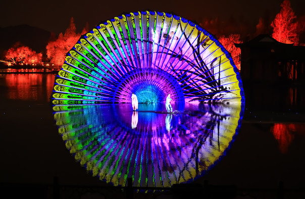 张艺谋带领的主创团队运用最新的影像技术,一把美轮美奂、光彩流转的折扇,缓缓打开,流光溢彩之间,极其逼真;湖光夜色之中,采茶女踏水起舞,流光溢彩之间,整个西湖都随之轻盈律动起来。