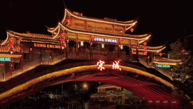 景区内东街、西街、北街、市井街、虹桥、风花巷街衢纵横,一派繁华的宋韵景象,国风、古风扑面而来。朋克街、宋城门、天空树、时光树、相思树、云梯漫步、演艺广场等一步一景,穿越时空。泛舟宋河上,人在画中游,体验浓郁的江南韵味。在森林剧院尽情狂欢,在悬崖剧院与风齐鸣。