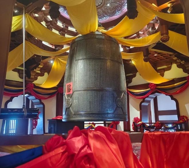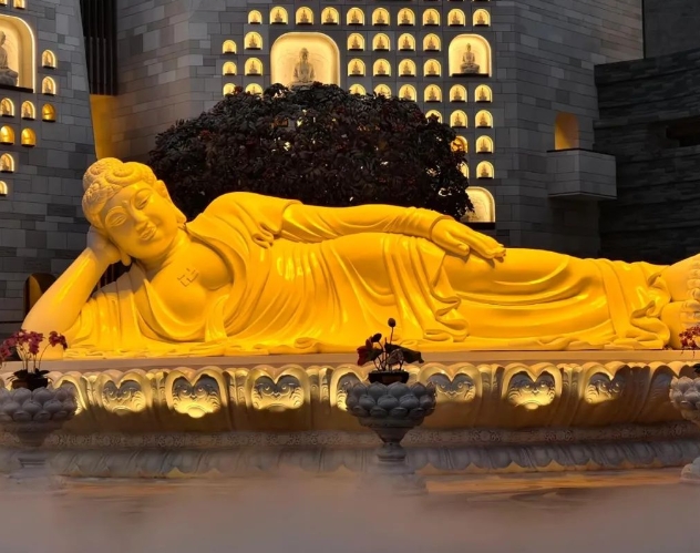大穹顶形如佛祖袈裟覆盖在小穹顶之上,象征着佛祖的无量加持;小穹顶下部为莲花宝座造型,上部为摩尼宝珠造型,上下结合形成“莲花托珍宝”的神圣意象。