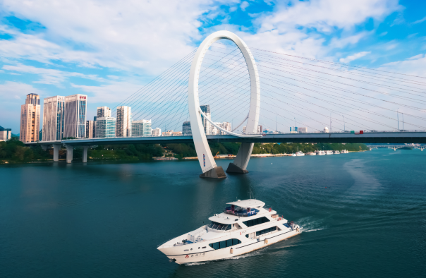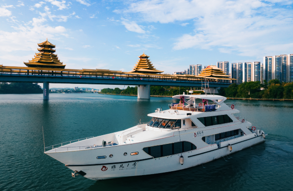 东堤旅游码头是百里柳江景区的主要登船码头,码头入口的正中央河面停靠着豪华大气的非凡1号游轮,是码头景区的点睛之笔。宽阔平坦的码头步区,清澈的柳江水面,吹着江风,品着游轮,赏着网红白沙大桥,景色迷人,真令人心旷神怡,流连忘返。