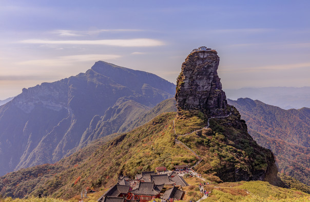 梵净山是武陵山脉的主峰,位于江口、印江、松桃三县交界处,山体庞大雄浑,摩云接天,早在明初就被尊为名岳之宗,是有名的佛教圣地。此外,梵净山还拥有成片的红叶观赏区,每到秋天,层林尽染,红叶与山上的庙宇交相辉映。在这里可以坐着缆车俯瞰连绵不断的红叶,也可以漫步于山间,感受两旁和头顶的红叶似火。