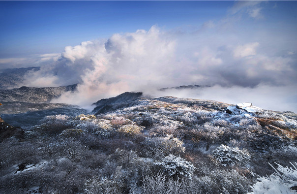 梵净山位于贵州省东北部的铜仁地区,海拔2572米,系武陵山脉主峰、联合国“人与生物圈”保护网成员、世界自然遗产、国家5A级旅游景区。总面积567平方公里。原始洪荒是梵净山的景观特征,全境山势雄伟、层峦叠嶂,溪流纵横、飞瀑悬泻。其标志性景点有:红云金顶、月镜山、万米睡佛、蘑菇石、万卷经书、九龙池、凤凰山等。