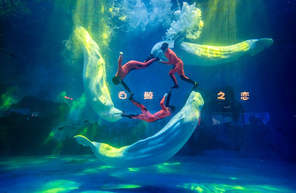 历时三年精心打造,2014年亮相,以四大别具特色的精彩表演“快乐月亮岛”、“鲸月传奇”、“人鱼童话”、“嗷嗷星历险记”共同打造了别开生面、精彩纷呈四大演绎。受欢迎的五大动物明星——白鲸、海豚、伪虎鲸、海象、海狮各怀绝技,联袂人鱼公主共同上演热闹精彩的“海洋大马戏”,无论在剧情上、演绎上、还是氛围营造上皆为国内高水准,让众多游人大开眼界、津津乐道。