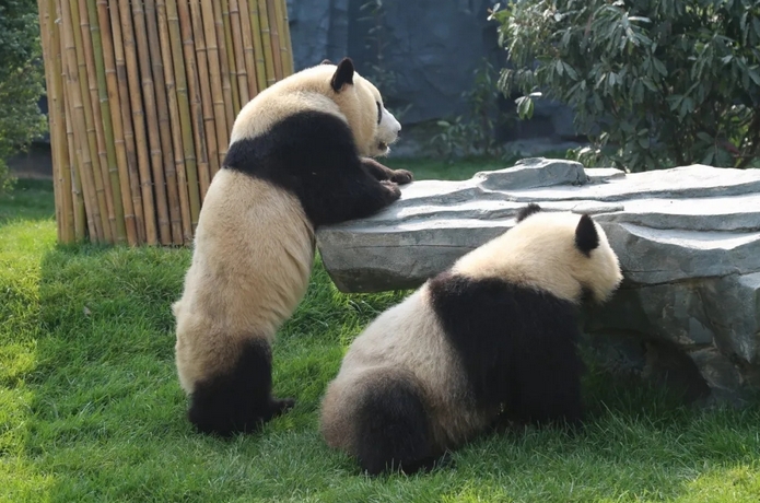 我们国宝双雄和奧娇,这两只自带表情的小可爱,在熊猫馆等着你来和它们一起玩耍。看他们那憨萌可爱的样子,真的好想上去一把搂住,当然啦,只是想想。(小提示:它可不是真的吃素,典型的食肉动物呢,所以,小朋友们可不能伸手去摸他们哦,一定要遵守园区的规定观看它们玩耍就好了)