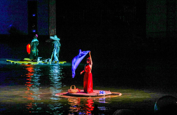《宏村阿菊》以宏村秀美的自然风光为舞台背景,以徽州女人“阿菊”为线索,经历选亲、新婚、丈夫外出经商、女人勇斗盗贼保护家园等过程,终迎接丈夫荣归故里,表现出徽州女人的坚韧勇敢、妩媚多情以及徽商在外打拼的艰难。通过《甜蜜新婚》、《不舍送别》、《守护家园》、《永恒的爱》四个章节,艺术地再现徽州女人的勤劳、勇敢、坚守、执着。颠覆了徽州女人一贯隐忍寂寞的传统形象,不再“苦情”,而是变得娇俏妩媚、机智勇敢,令人耳目一新。
