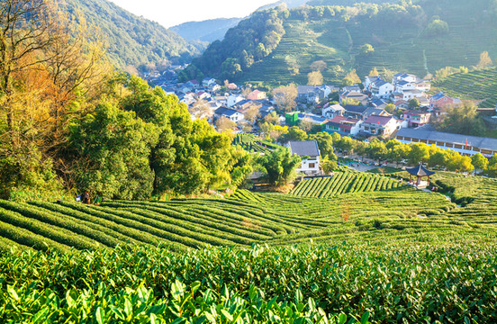 龙井村,因盛产西湖龙井茶而闻名于世。东临西子湖,西依五云山,南靠滔滔东去的钱塘江水,北抵插入云端的南北高峰,四周群山叠翠,云雾环绕,就如一颗镶嵌在西子湖畔的翡翠宝石。