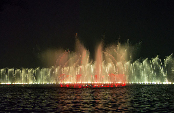 入夜后的喷泉因为有彩色灯光效果,看起来比白天更壮观。无数水柱在夜色中配合着灯光、音乐的节奏舞动,美轮美奂。如果你是专程冲着看喷泉去的,建议尽量早些出发,挑一个中间有广播的位置。尤其是在节假日人非常多,去晚了多半只能在外围远远看上一眼了。